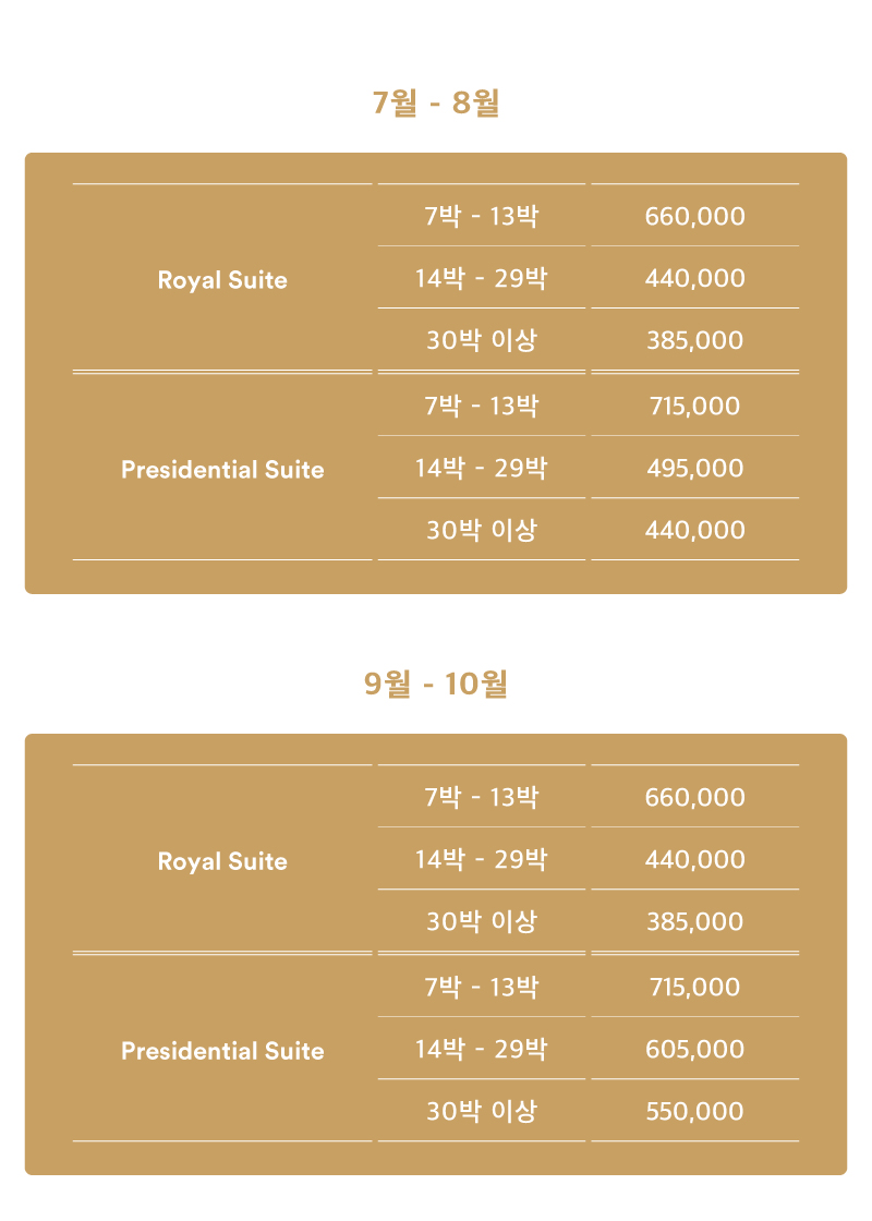 일일 객실 요금 기준이며, 10% 세금이 포함되어 있습니다.